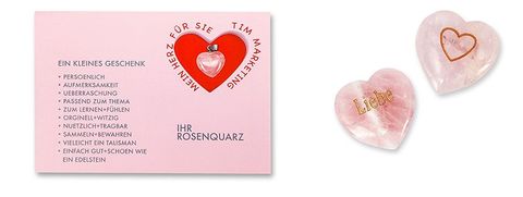 Het rozenkwarts hart, als zaksteen / flatterende steen, of gewoon om naar te kijken, brengt veel vrienden. Aan beide zijden gegraveerd, goudkleurig.
